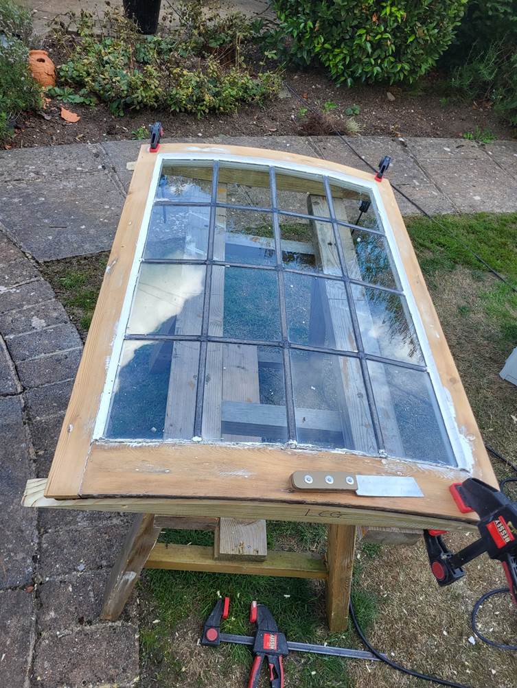After repairing using Accoya to rebuild the mortice and tenons, we re-puttied and primed the sashes, ready to be refitted.