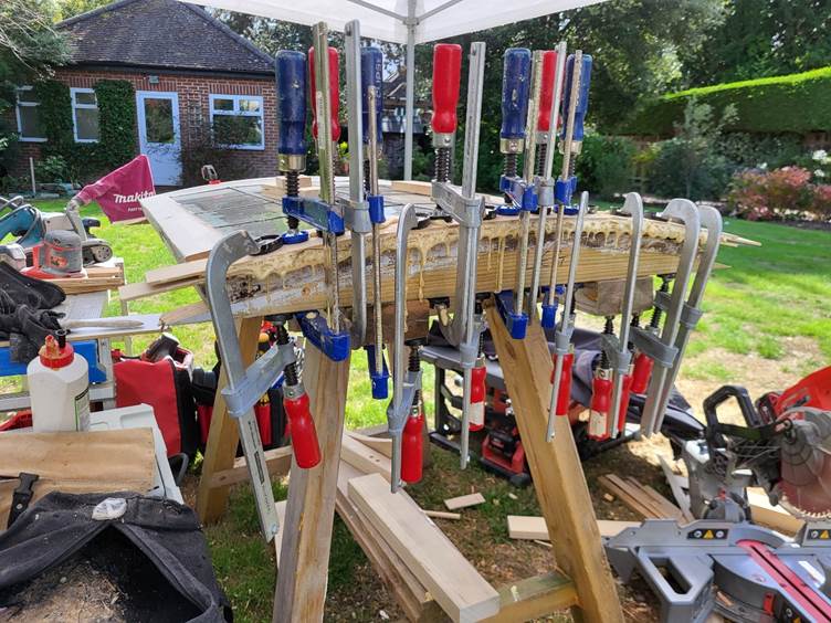 We took a few minutes to ensure the sashes were properly supported and would finish in the correct size and shape at the end of the repair.