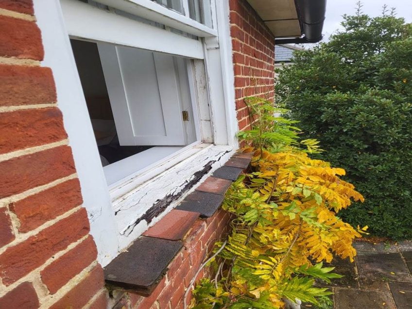 This sash window in a Grade 2 listed building had a rotten sill. It’s a very common repair and traditionally joined timber sliding sash windows are, in fact, designed to have their components replaced from time to time.