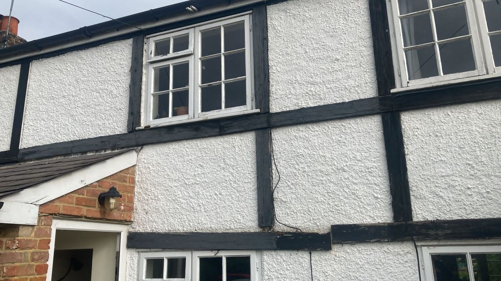Previously replaced in untreated softwood, the cladding of this terrace cottage had cupped, checked and worked it’s way from the render.
