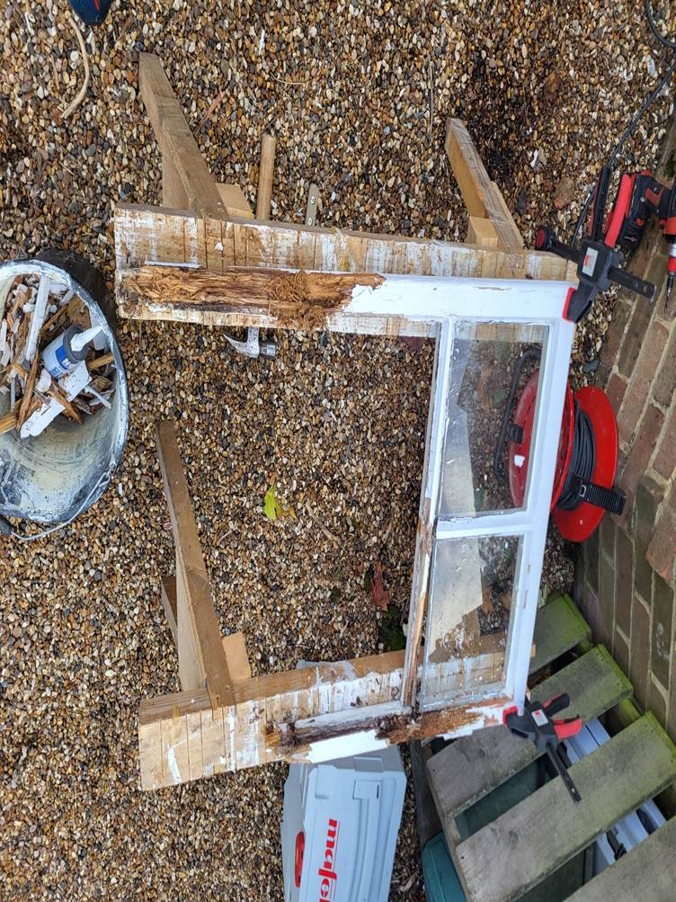 On first inspection, this casement with glazing bars and roundels didn’t appear to be in too awful condition. However, insect and fungal attack on timber can be deceptive. The core of the timber can be eaten away to mush and powder whilst the outside and paint remain intact.